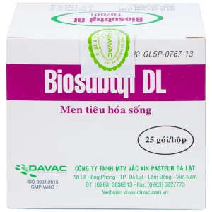 Men tiêu hoá sống Biosubtyl DL Davac điều trị tiêu chảy, viêm đại tràng, rối loạn tiêu hoá (25 gói)