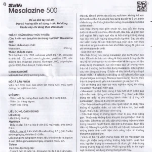 Thuốc Mesalazine 500mg SaviPharm điều trị viêm loét đại tràng (10 vỉ x 10 viên)