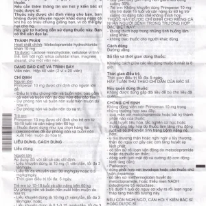 Thuốc Primperan 10mg Sanofi điều trị triệu chứng nôn và buồn nôn (2 vỉ x 20 viên)