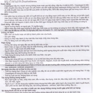 Thuốc Clopidogrel 75 – MV USP làm giảm hay dự phòng các biến cố huyết khối (3 vỉ x 10 viên)