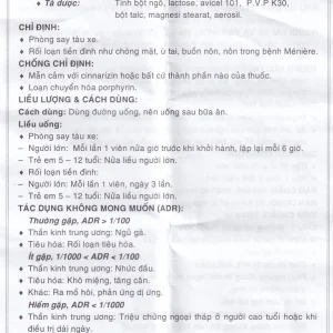 Thuốc Cinnarizin 25mg Vidipha phòng say tàu xe, rối loạn tiền đình (100 viên)