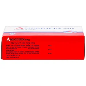 Thuốc Amlodipin 5mg Vidipha điều trị tăng huyết áp, đau thắt ngực (3 vỉ x 10 viên)