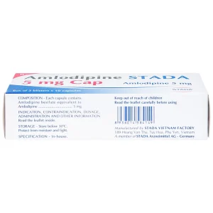 Thuốc Amlodipine Stada 5mg Cap điều trị tăng huyết áp, đau thắt ngực (3 vỉ x 10 viên)
