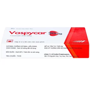 Thuốc Vaspycar 20mg Pymepharco điều trị đau thắt ngực ổn định (2 vỉ x 30 viên)