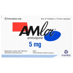 Thuốc Amlor 5mg Viatris điều trị tăng huyết áp, đau thắt ngực (3 vỉ x 10 viên)