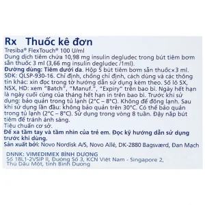 Thuốc tiêm Tresiba 100units/ml điều trị đái tháo đường (5 cây x 3ml)