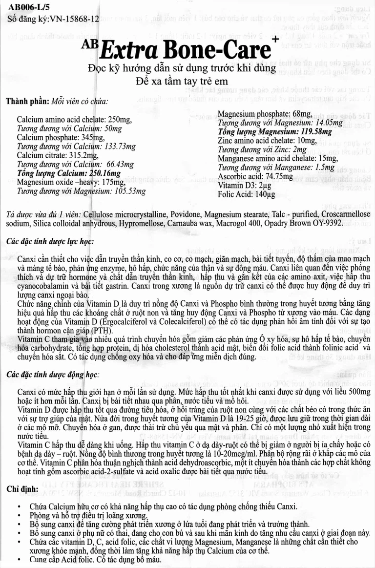 Thành phần của Thuốc AB ExtraBone-Care+