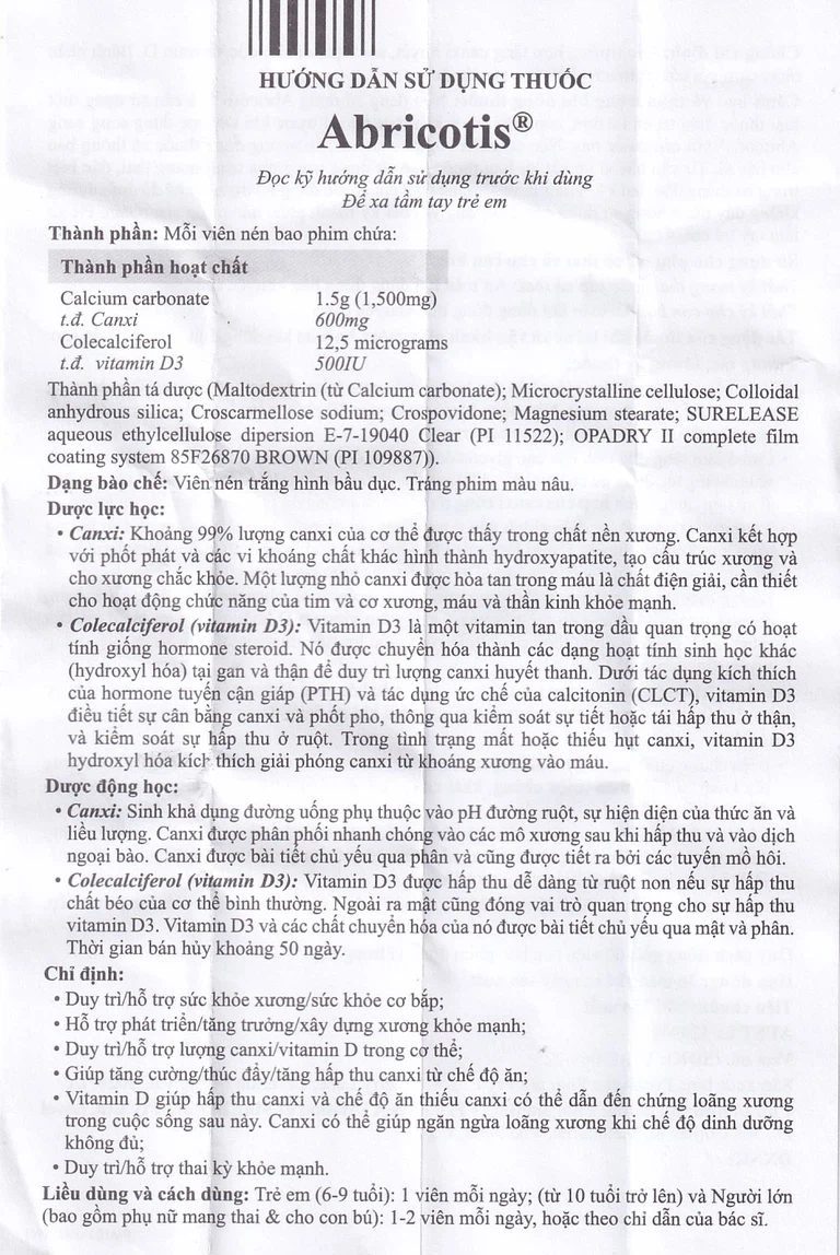 Thuốc Abricotis chỉ định dùng trong các trường hợp sau: