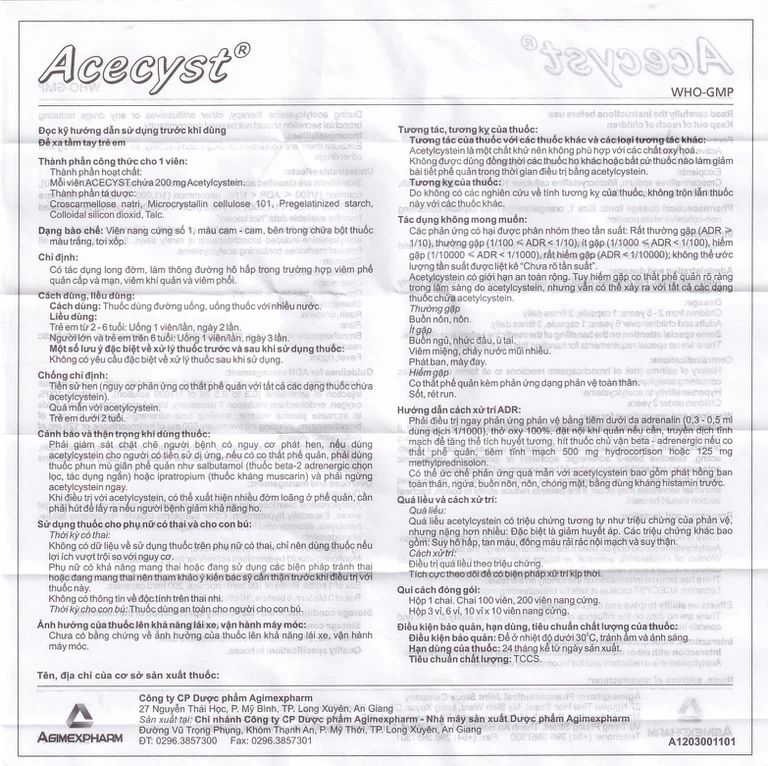 Khi sử dụng thuốc Acecyst®, bạn có thể gặp các tác dụng không mong muốn (ADR).