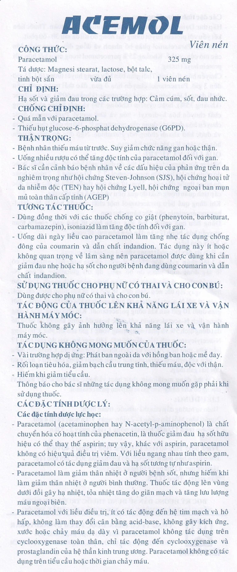 Công dụng của Thuốc Acemol 325mg