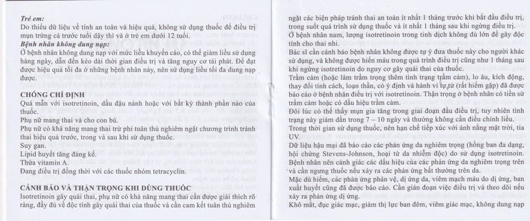 Isotretinoin chỉ nên được kê đơn bởi bác sĩ có kinh nghiệm sử dụng các retinoid điều trị mụn trứng cá nặng và có hiểu biết đầy đủ về nguy cơ khi điều trị bằng isotretinoin cũng như các biện pháp theo dõi trong quá trình dùng thuốc.