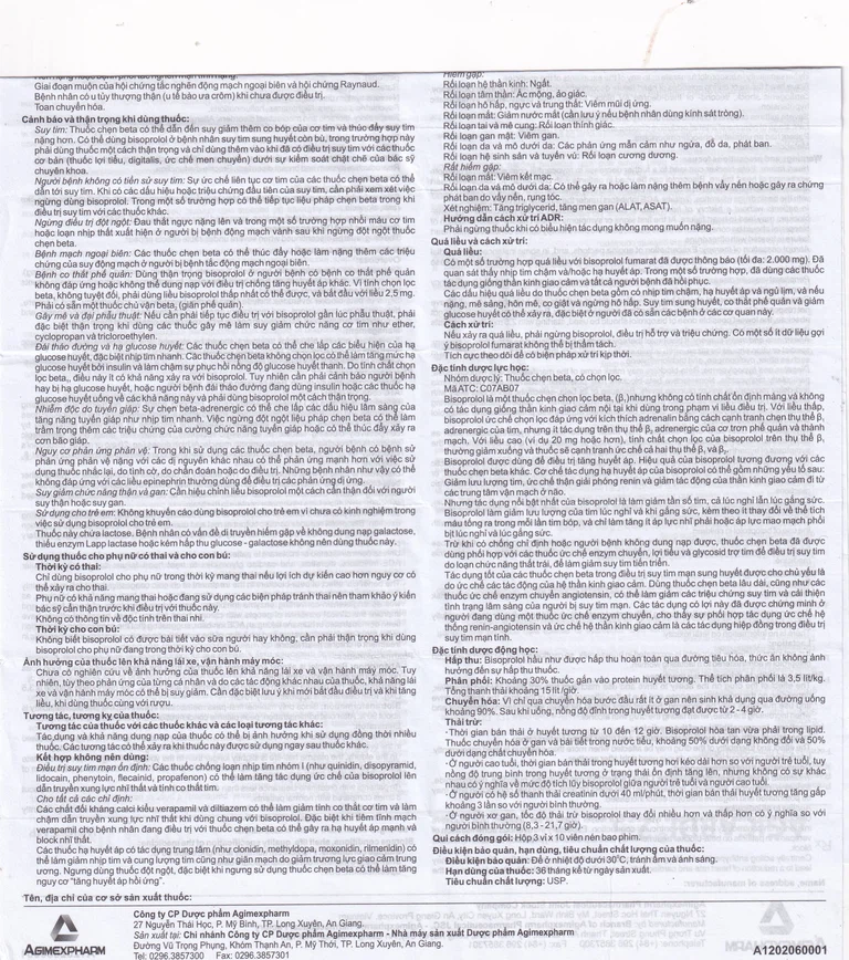 Thuốc Agicardi 2,5 Agimexpharm điều trị tăng huyết áp, đau thắt ngực ổn định mạn tính (3 vỉ x 10 viên)
