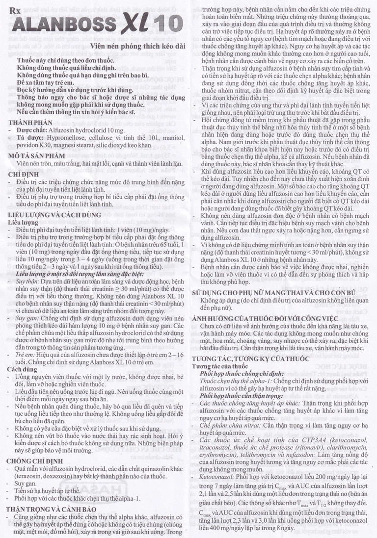 Trẻ em: Hiệu quả của alfuzosin chưa được thiết lập ở trẻ em 2 – 16 tuổi. Chống chỉ định sử dụng Alanboss XL 10 ở trẻ em.