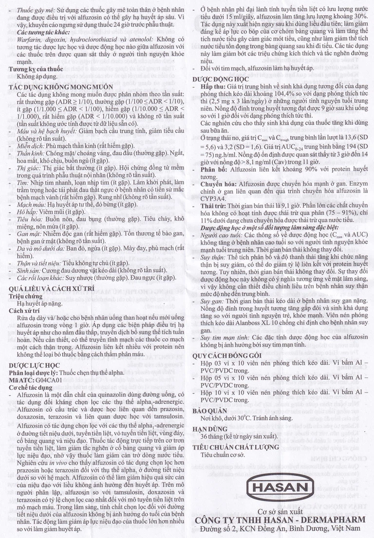 Alfuzosin là một dẫn chất của quinazolin dùng đường uống, có tác dụng đối kháng chọn lọc các thụ thể alpha,-adrenergic.