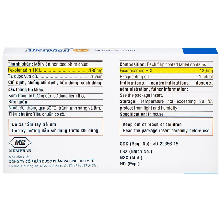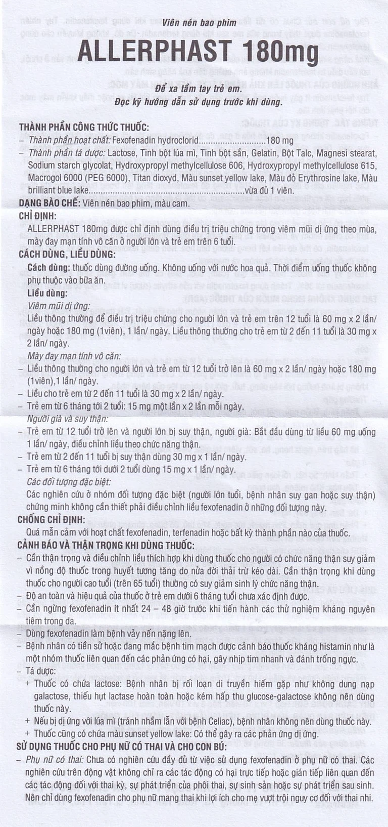 Allerphast được chỉ định sử dụng trong trường hợp: