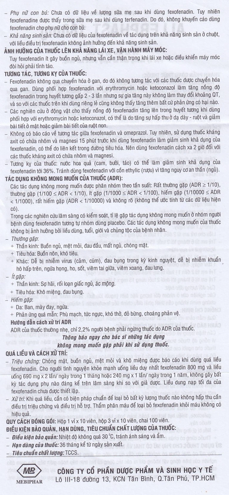 Khi sử dụng Allerphast 180 mg thường gặp các tác dụng không mong muốn (ADR).