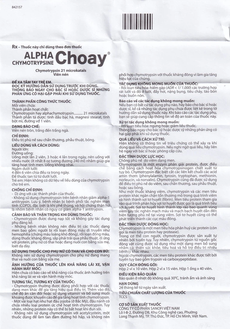 Cách dùng Thuốc Alpha Chymotrypsine Choay