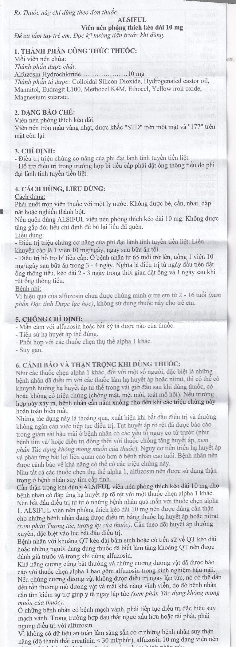 Trước khi sử dụng thuốc Alsiful S.r, bạn cần đọc kỹ hướng dẫn sử dụng và tham khảo thông tin bên dưới.