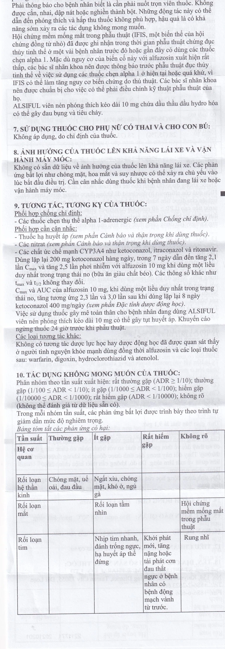 Chống chỉ định phối hợp Alsiful S.r với các thuốc chẹn thụ thể alpha-1.