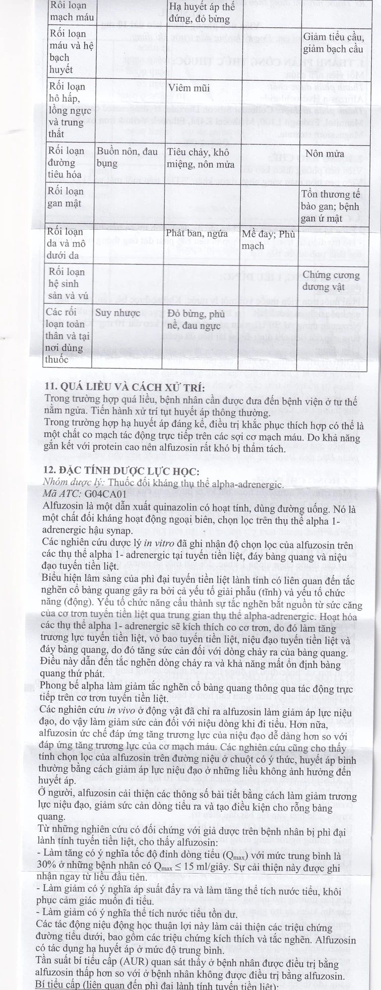 Trong các nghiên cứu có kiểm soát bằng giả dược, Alfuzosin:
