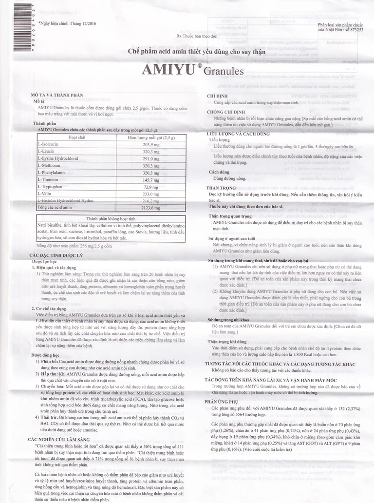Thuốc AMIYU® Granules được chỉ định dùng trong trường hợp cung cấp các acid amin trên bệnh nhân suy thận mạn tính.