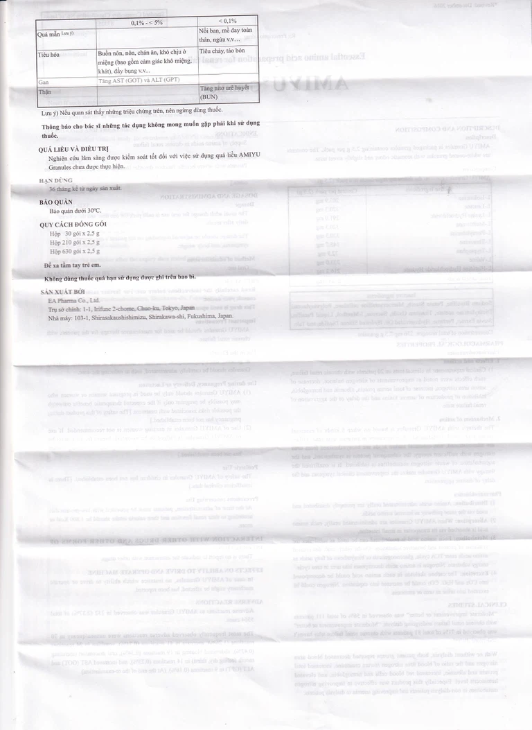 Nghiên cứu lâm sàng được kiểm soát tốt đối với việc sử dụng quá liều AMIYU® Granules chưa được thực hiện.