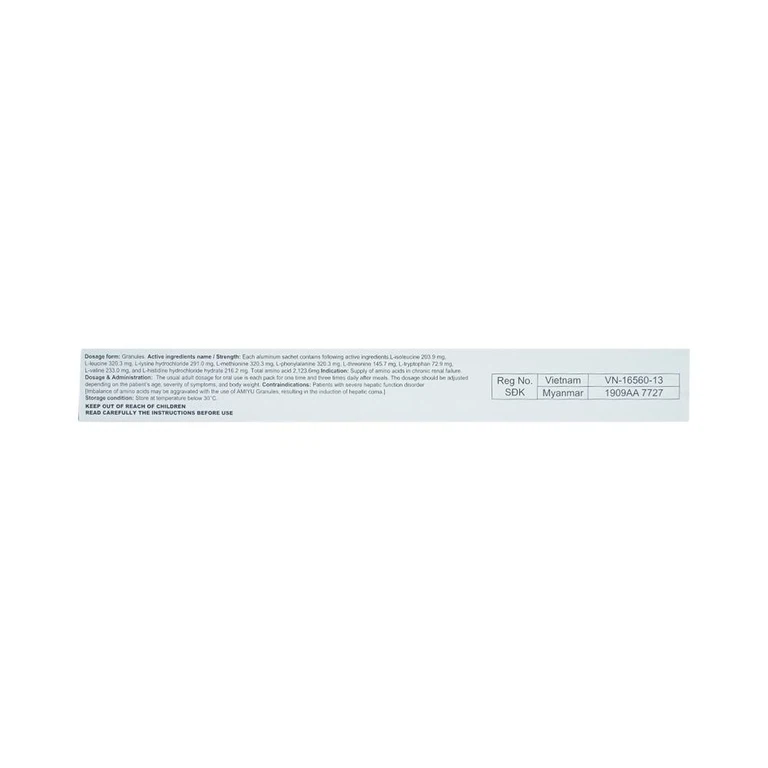 Khi AMIYU® Granules được dùng đường uống, mỗi acid amin được hấp thu qua chất vận chuyển của nó ở ruột non.