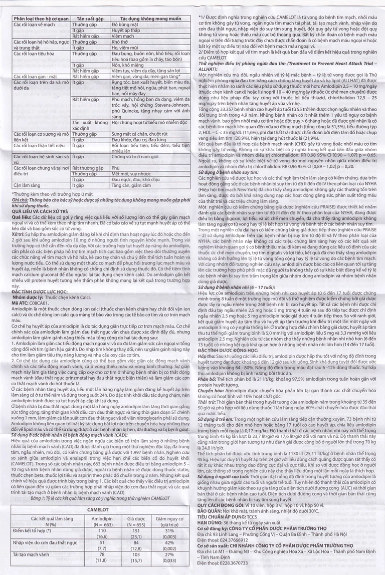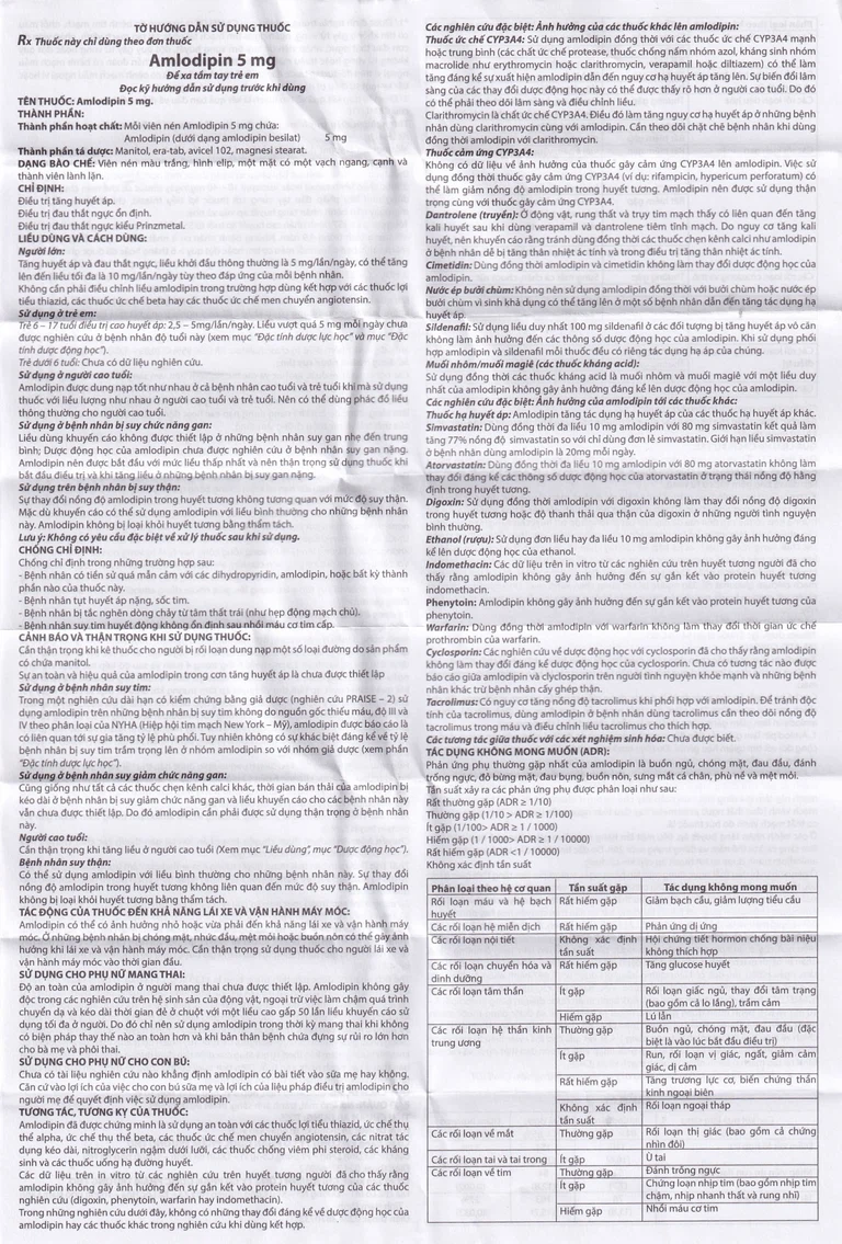 Amlodipin 5mg của Công ty cổ phần dược phẩm Trường Thọ, thành phần chính là amlodipin. Amlodipin 5mg là thuốc điều trị tăng huyết áp, đau thắt ngực ổn định, đau thắt ngực kiểu Prinzmetal. Amlodipin 5mg được bào chế dưới dạng viên nén, đóng gói theo quy cách hộp 3 vỉ x 10 viên.