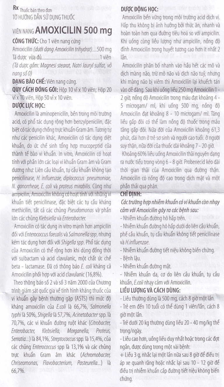 Liều thường dùng là 500 mg, cách 8 giờ một lần