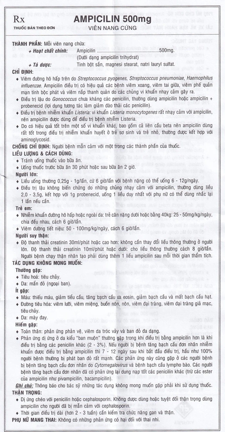 Thuốc Ampicilin 500 mg chống chỉ định trong các trường hợp người bệnh mẫn cảm với một trong các thành phần của thuốc.