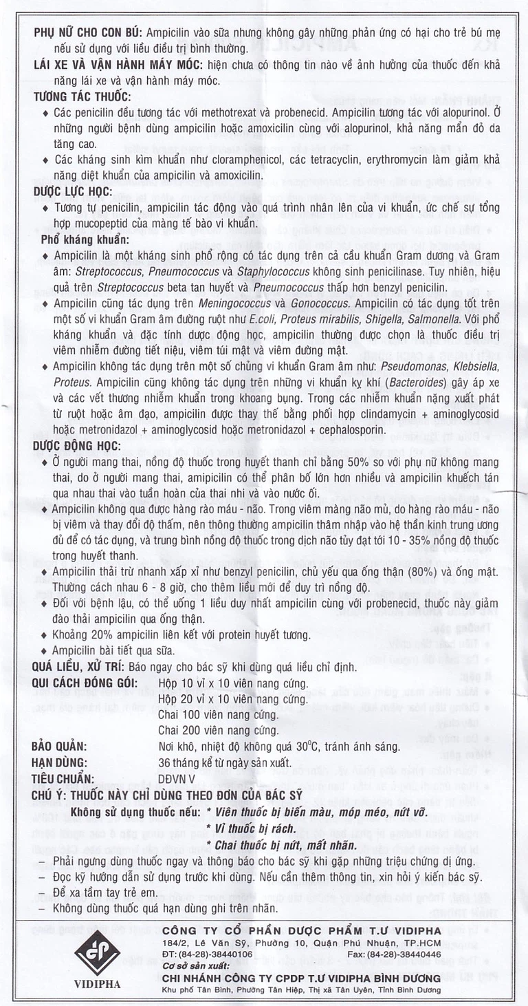 Ampicilin vào sữa nhưng không gây những phản ứng có hại cho trẻ bú mẹ nếu sử dụng với liều điều trị bình thường.