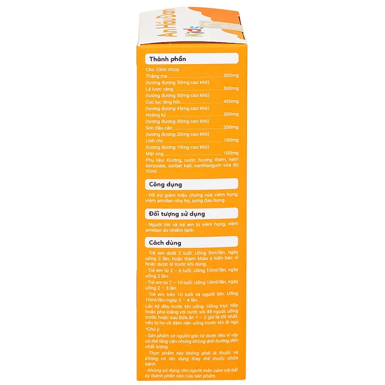 Thực phẩm bảo vệ sức khoẻ An Hầu Đan Kids hỗ trợ giảm triệu chứng của viêm họng, viêm amidan như ho, sưng đau họng.