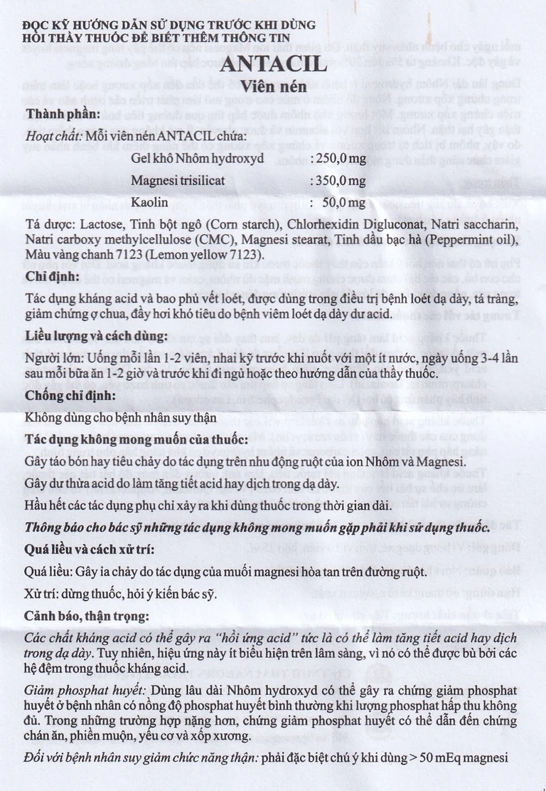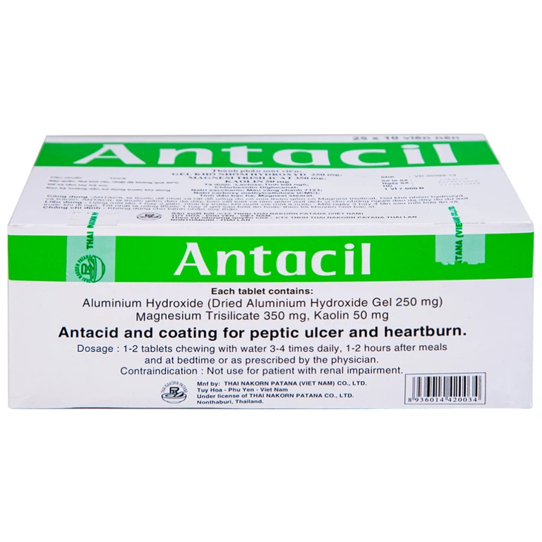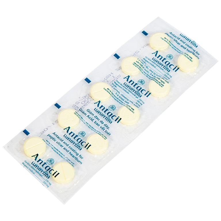 Thuốc Antacil có tác dụng kháng acid và bao phủ vết loét, được dùng trong điều trị bệnh loét dạ dày , tá tràng, giảm chứng ợ chua , đầy hơi khó tiêu do bệnh viêm loét dạ dày dư acid.