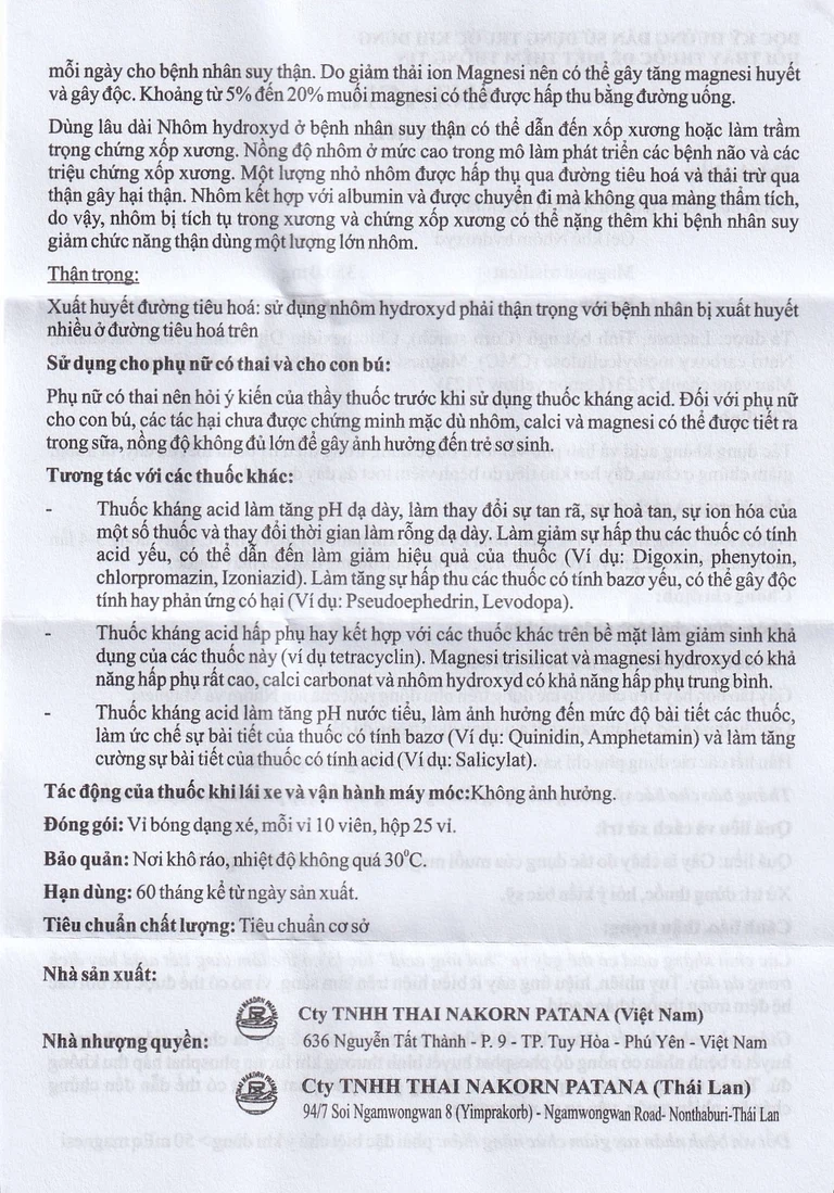 Gây táo bón hay tiêu chảy do tác dụng trên nhu động ruột của ion Nhôm và Magnesi.