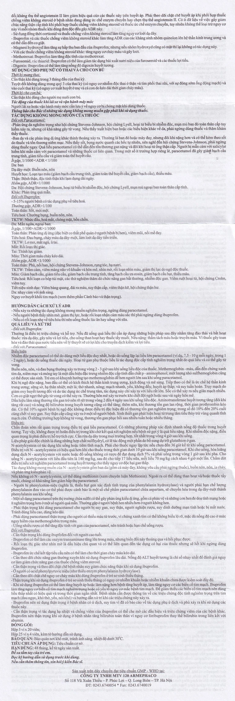- Ðiều trị cảm sốt, nhức đầu , đau răng, đau bụng kinh, đau nhức cơ quan vận động.