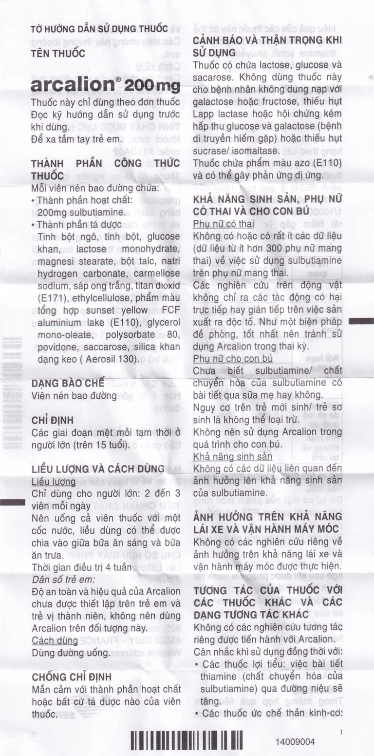 Không rõ liệu sulbutiamine hoặc các chất chuyển hóa có được bài tiết vào sữa mẹ hay không. Không thể loại trừ rủi ro đối với trẻ mới sinh/ trẻ sơ sinh. Thuốc Arcalion 200 không nên dùng trong thời kỳ cho con bú.