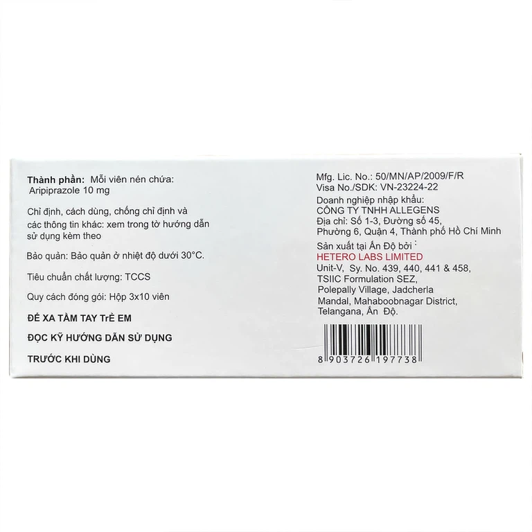 - Cần giảm liều Aripiprazol xuống mức liều khuyến cáo khi ngưng điều trị kết hợp với chất gây cảm ứng CYP3A4.