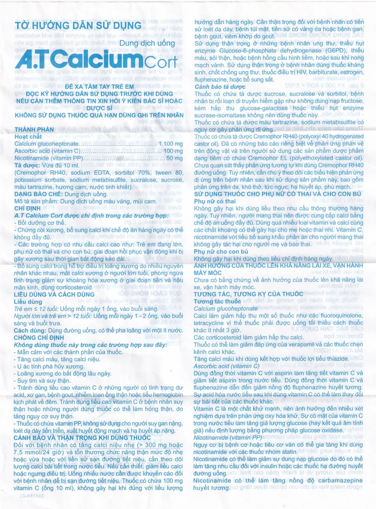 Cách dùng Dung dịch uống A.T Calcium Cort