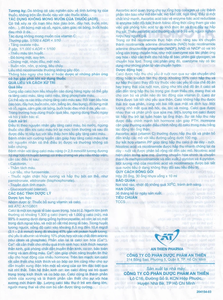 Đối với bệnh nhân có tăng calci niệu nhẹ (> 300 mg hoặc 7,5 mmol/24 giờ) và tổn thương chức năng thận mức độ nhẹ hoặc vừa hoặc với tiền sử sạn đường tiết niệu, cần theo dõi lượng calci bài tiết trong nước tiểu. Nếu cần thiết, giảm liều calci hoặc ngưng điều trị. Uống nhiều nước cần được khuyến cáo đối với bệnh nhân dễ bị sạn đường tiết niệu. Thuốc có chứa 100 mg vitamin C (ống 10 ml), không gây hại khi dùng với liều lượng hướng dẫn hàng ngày. Cần thận trọng đối với bệnh nhân có tiền sử loét dạ dày, bệnh túi mật, tiền sử có vàng da hoặc bệnh gan, bệnh gout, viêm khớp do gout.
