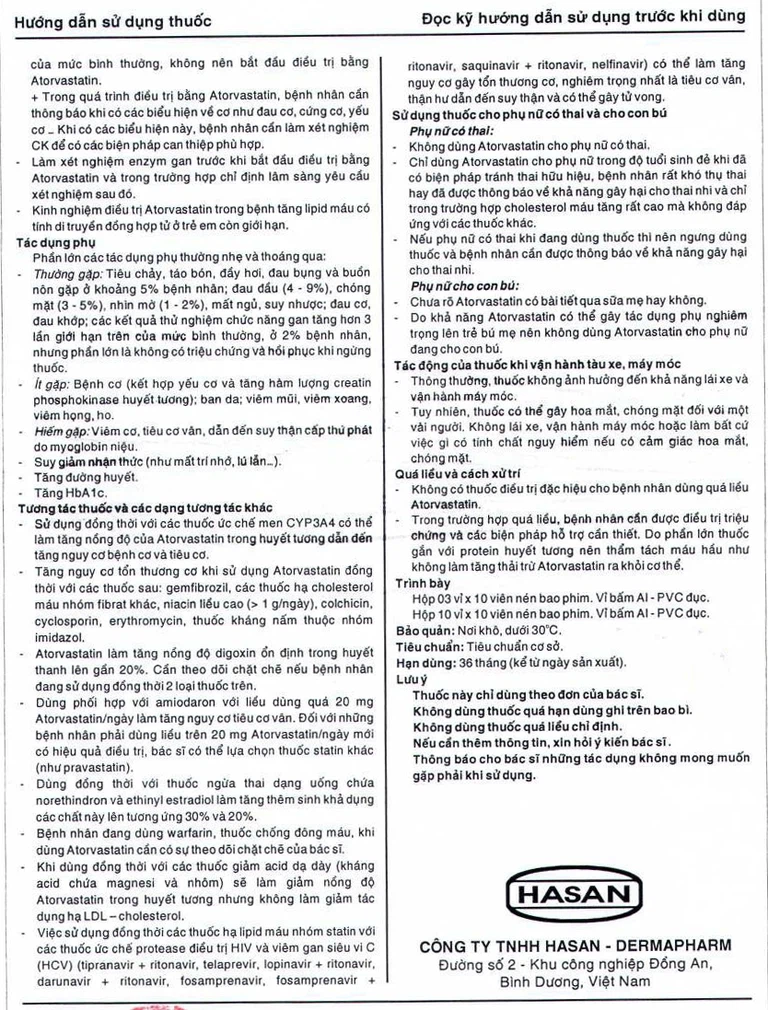Khi sử dụng thuốc AtorHASAN 10, bạn có thể gặp các tác dụng không mong muốn (ADR) thường nhẹ và thoáng qua: