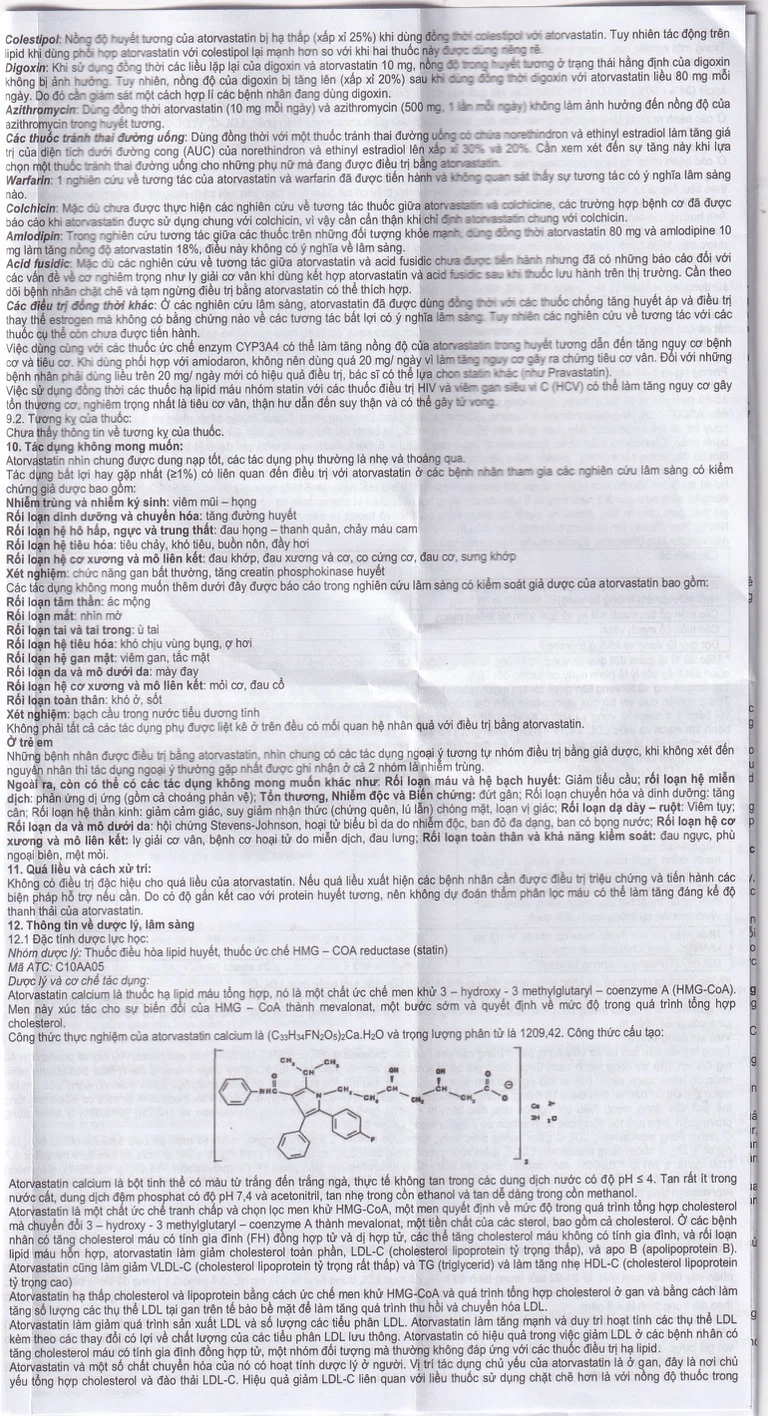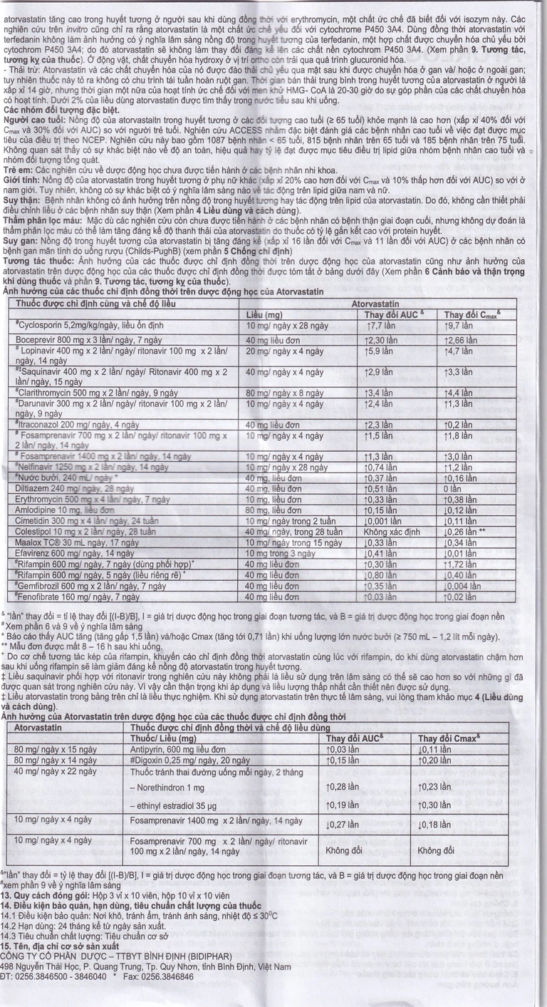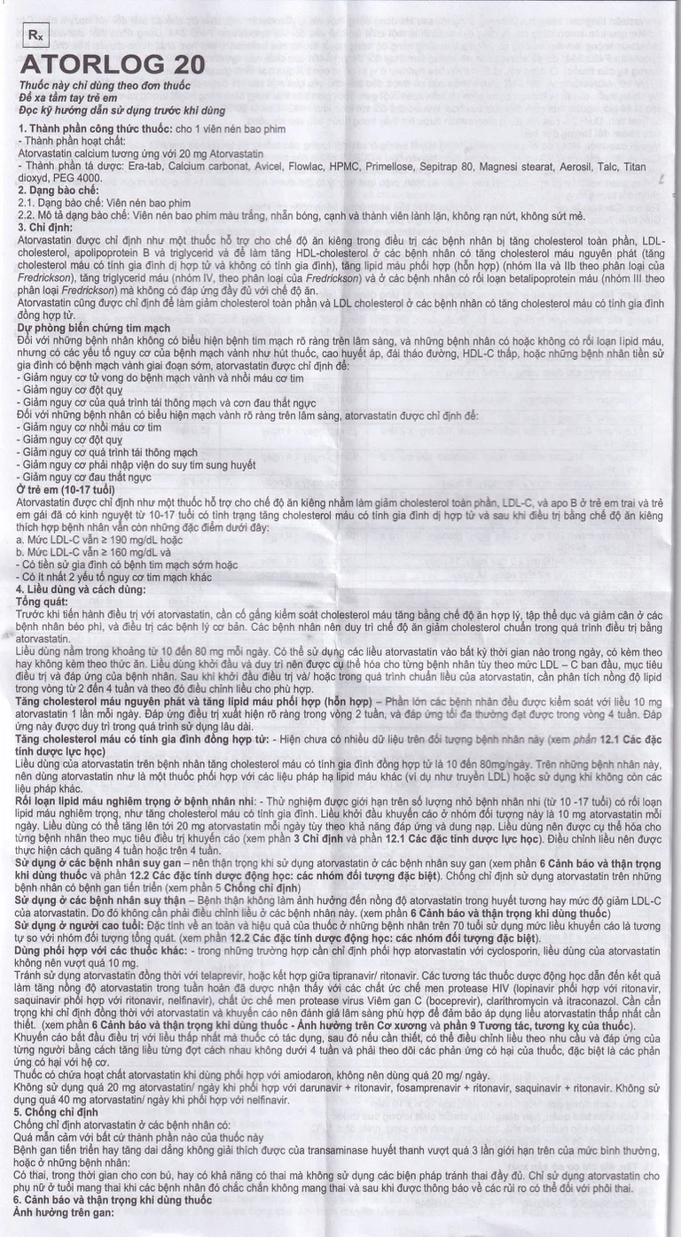 Atorlog 20 Bidiphar của Công ty Cổ phần Dược phẩm Bidiphar, thành phần chính Atorvastatin, được chỉ định trong trường hợp tăng cholesterol toàn phần và cholesterol LDL ở người bệnh tăng cholesterol máu có yếu tố gia đình đồng hợp tử, bổ trợ cho các cách điều trị hạ lipid khác. Thuốc được bào chế dưới dạng viên nén bao phim. Quy cách đóng gói: Hộp 3 vỉ x 10 viên.