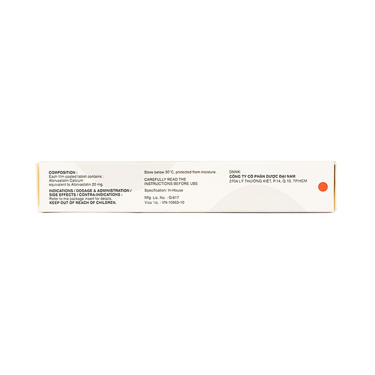 Sau khi uống, atorvastatin hấp thu nhanh và chuyển hóa mạnh bước đầu ở gan. Sinh khả dụng tuyệt đối của atorvastatin 14%. Thời gian đạt nồng độ đỉnh 1 – 2 giờ. Thức ăn làm thay đổi sinh khả dụng toàn thân của atorvastatin sau khi uống. Nồng.độ thuốc trong huyết tương có thể liên quan đến nhịp ngày đêm, uống atorvastatin vào buổi chiều tối làm nồng độ đỉnh thuốc trong huyết tương và diện tích dưới đường cong nồng độ – thời gian (AUC) giảm 30 – 60%.