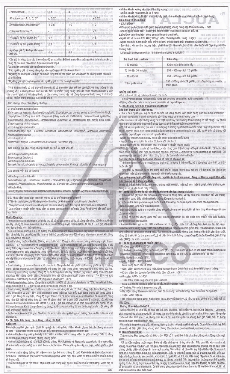 Amoxicilin và acid clavulanic đều hấp thu dễ dàng qua đường uống và cùng bền vững với dịch acid của dạ dày. Nồng độ của amoxicilin và acid clavulanic trong huyết thanh đạt tối đa sau 1 – 2,5 glờ uống liều đơn dạng thuốc viên thông thường.