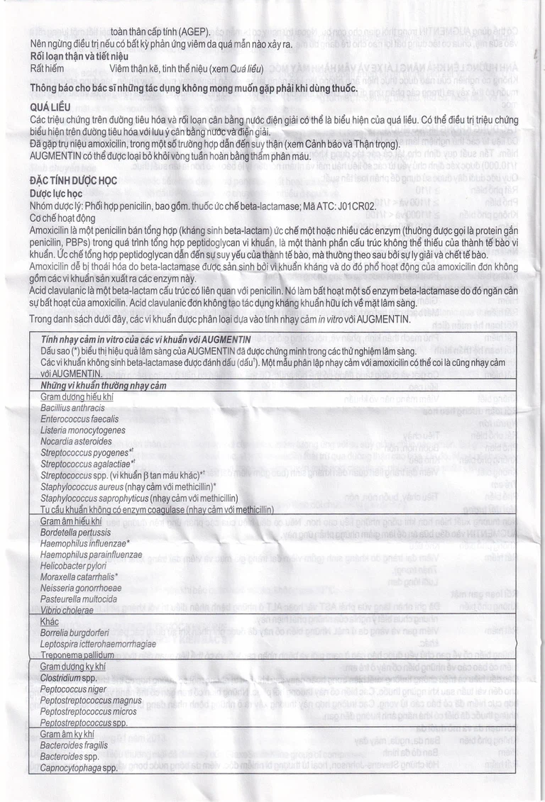Hiếm khi tăng INR ở bệnh nhân dùng acenocoumarol hoặc warfarin kết hợp Augmentin. Nên theo dõi thời gian prothrombin, INR khi bắt đầu hoặc ngưng dùng Augmentin.