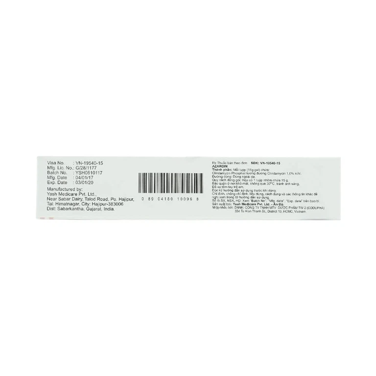 Thành phần của Gel bôi ngoài da Azaroin