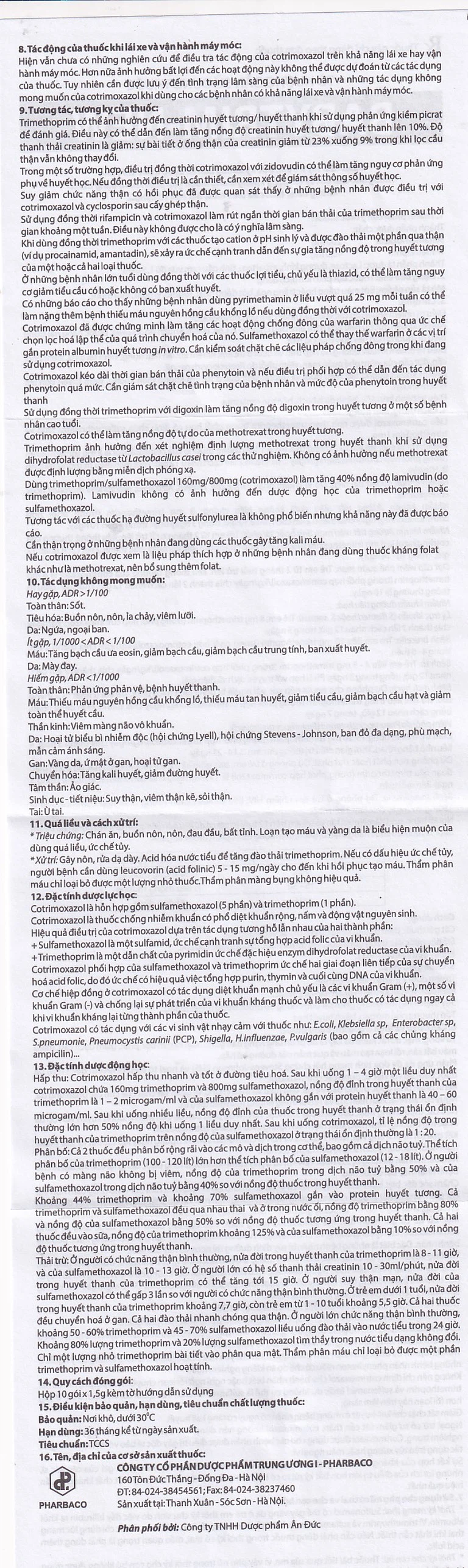 Liều cotrimoxazol được tính theo trimethoprim trong phối hợp cố định chứa sulfamethoxazol 5 mg và trimethoprim 1 mg.