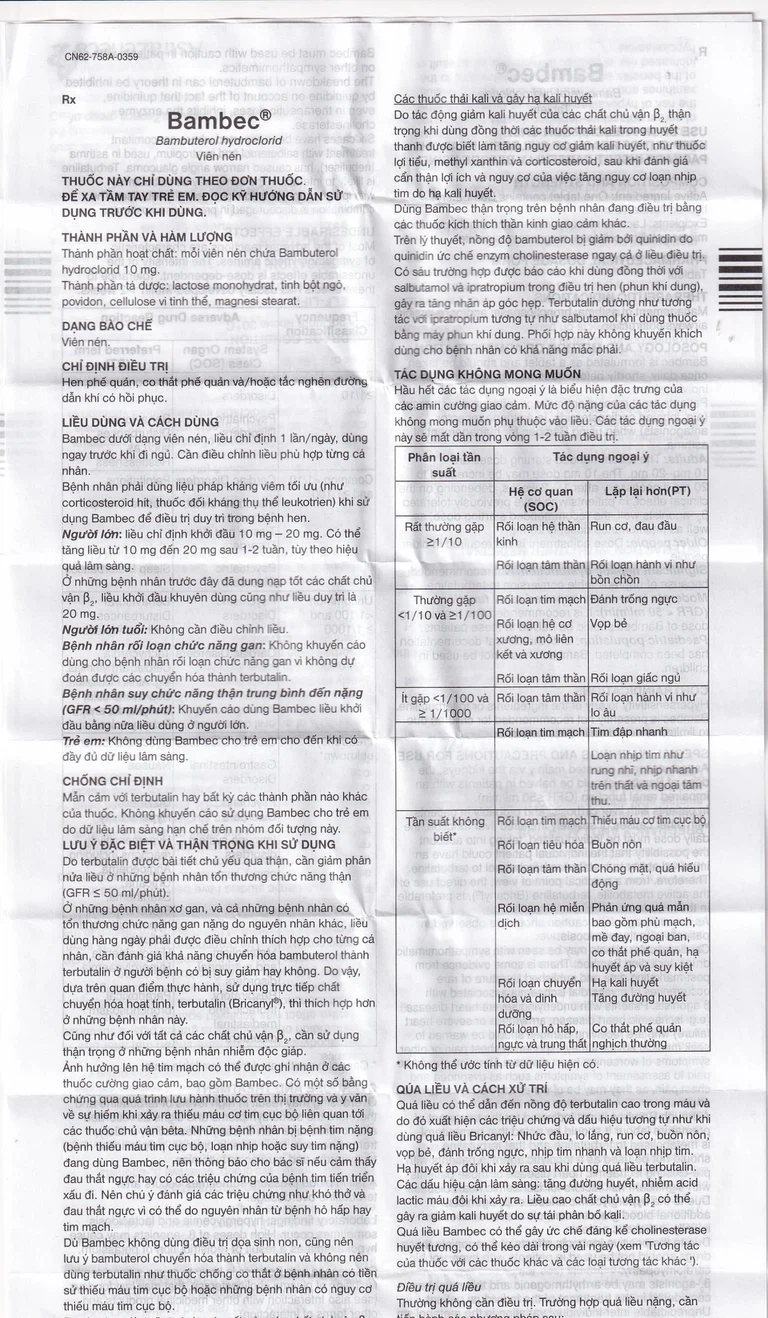 Liều chỉ định 1 lần/ngày. Cần điều chỉnh liều phù hợp từng cá nhân. Bệnh nhân phải dùng liệu pháp kháng viêm tối ưu (như corticosteroid hít, thuốc đối kháng thụ thể leukotrien) khi sử dụng Bambec để điều trị duy trì trong bệnh hen.