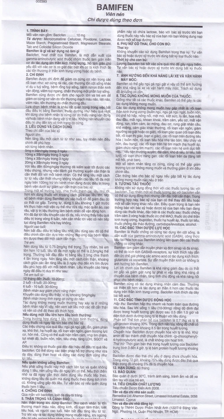 Bamifen là thuốc chống co cứng tác dụng lên cột sống, là dẫn xuất của Gamma – Aminobutyric acid (GABA), công thức cấu tạo hóa học của Bamifen không liên quan đến các thuốc chống co cứng khác.