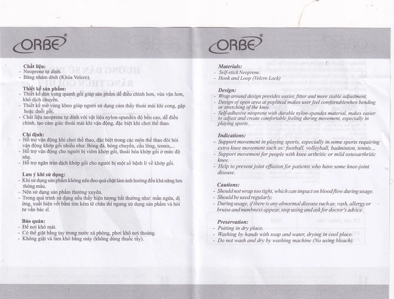 Băng thun gối H1 màu đen size S/M Orbe được chỉ định: