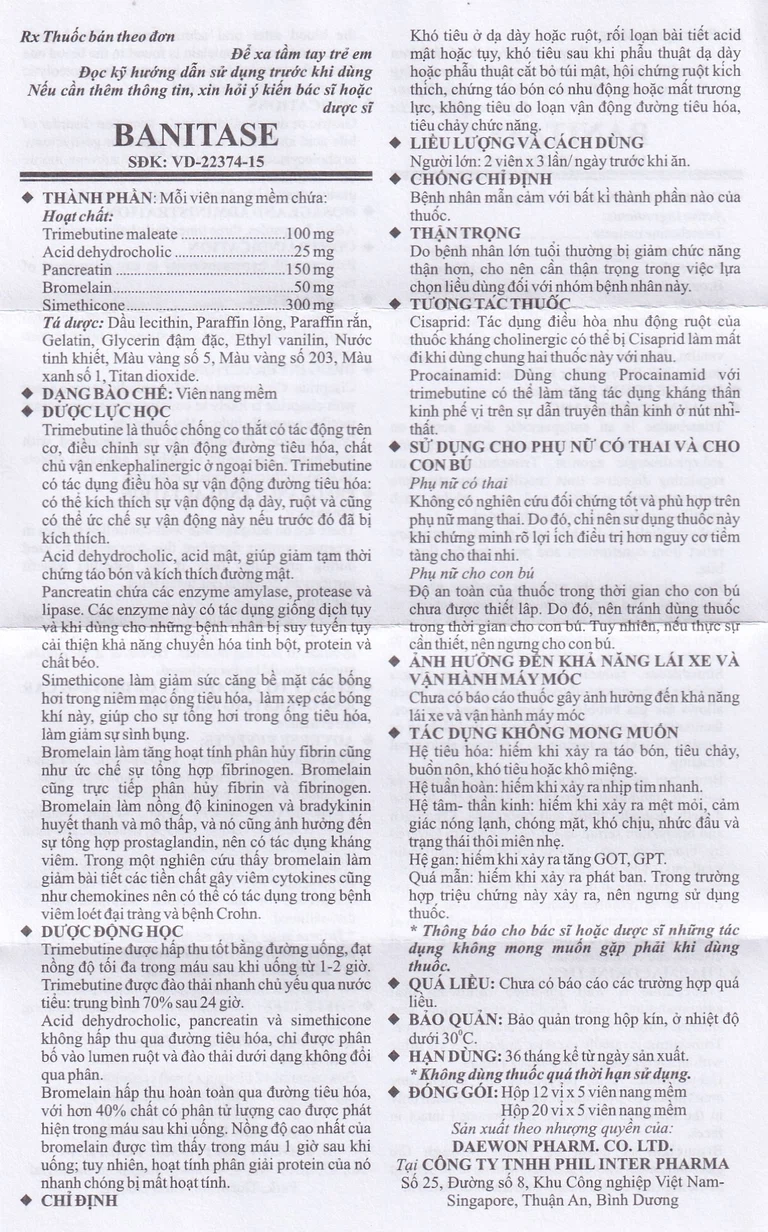Chưa có báo cáo về quá liều. Tuy nhiên, không dùng quá liều lượng được kê. Dùng thuốc nhiều hơn sẽ không cải thiện triệu chứng của bạn, thay vào đó chúng có thể gây ngộ độc hoặc những tác dụng phụ nghiêm trọng. Nếu bạn nghi vấn rằng bạn hoặc ai khác có thể đã sử dụng quá liều Banitase, vui lòng đến phòng cấp cứu tại bệnh viện hoặc viện chăm sóc gần nhất. Mang theo hộp, vỏ, hoặc nhãn hiệu thuốc với bạn để giúp các bác sĩ có thông tin cần thiết.